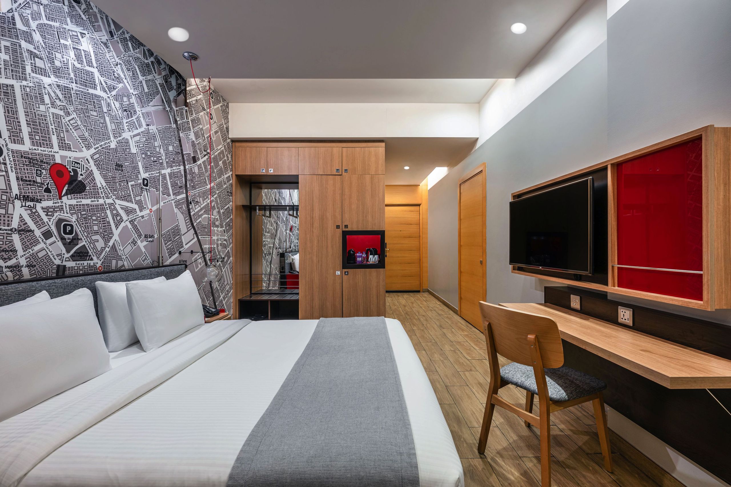 All rooms are stylish and feature a spacious closet, attached bathroom, LED TV with international and local channels, tea and coffee facilities, large desk with high-speed Internet access, minibar, iron and ironing board, and electronic safe.